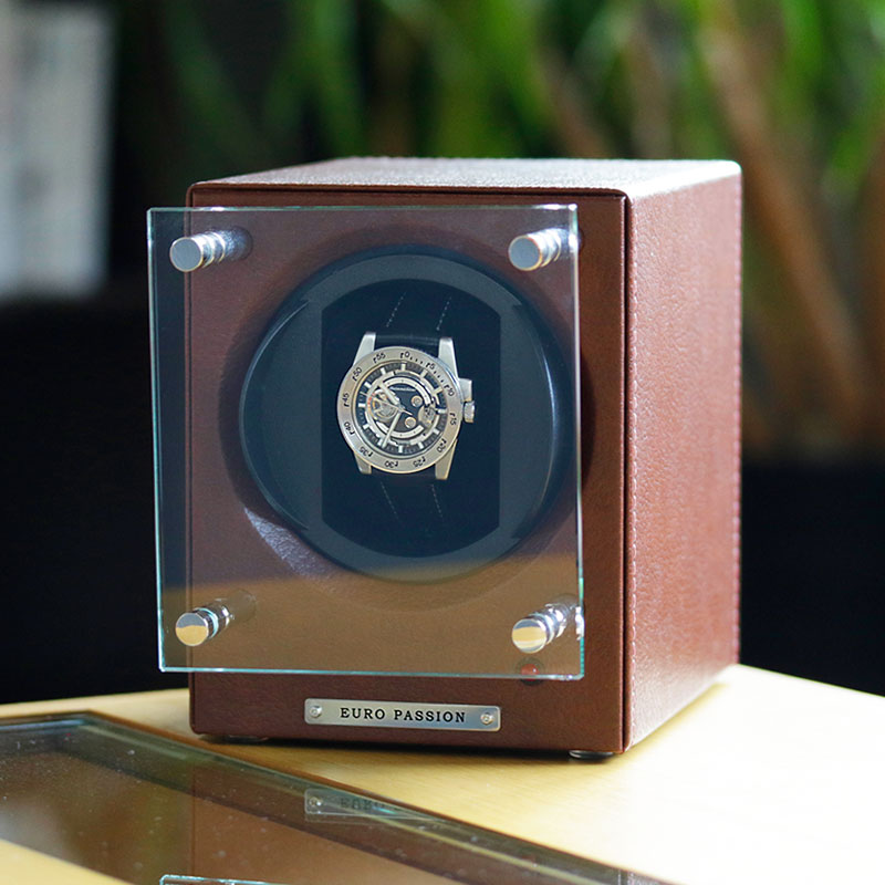 【高級ワインダー】ワインディングマシーン 自動巻き上げ機 腕時計 時計 ワインディング マシン ウォッチ ワインダー 収納 FWC-1119LBR 1本巻き 1本 1連 革 機械式 自動巻き 自動巻 機械式腕時計 ユーロパッション 高級 会社 社長 上司 プレゼント ギフト 誕生日 送料無料