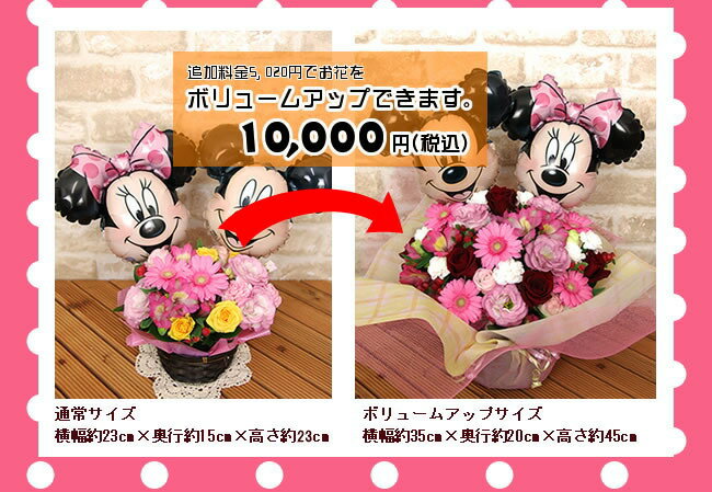 ミッキー&ミニースティックバルーン、メッセージカード、お花の長持ち剤、お手入れガイド付き※こちらの商品は、入荷の状況によって、色、種類が異なる場合があります。
